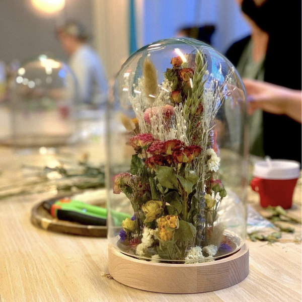 Altijd al een eigen droogbloemen stolp willen maken? Maar woon jij te ver weg om fysiek naar de workshop te komen? Dan komt de workshop naar jou!