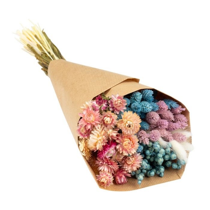 - Verschillende soorten en kleuren gedroogde bloemen