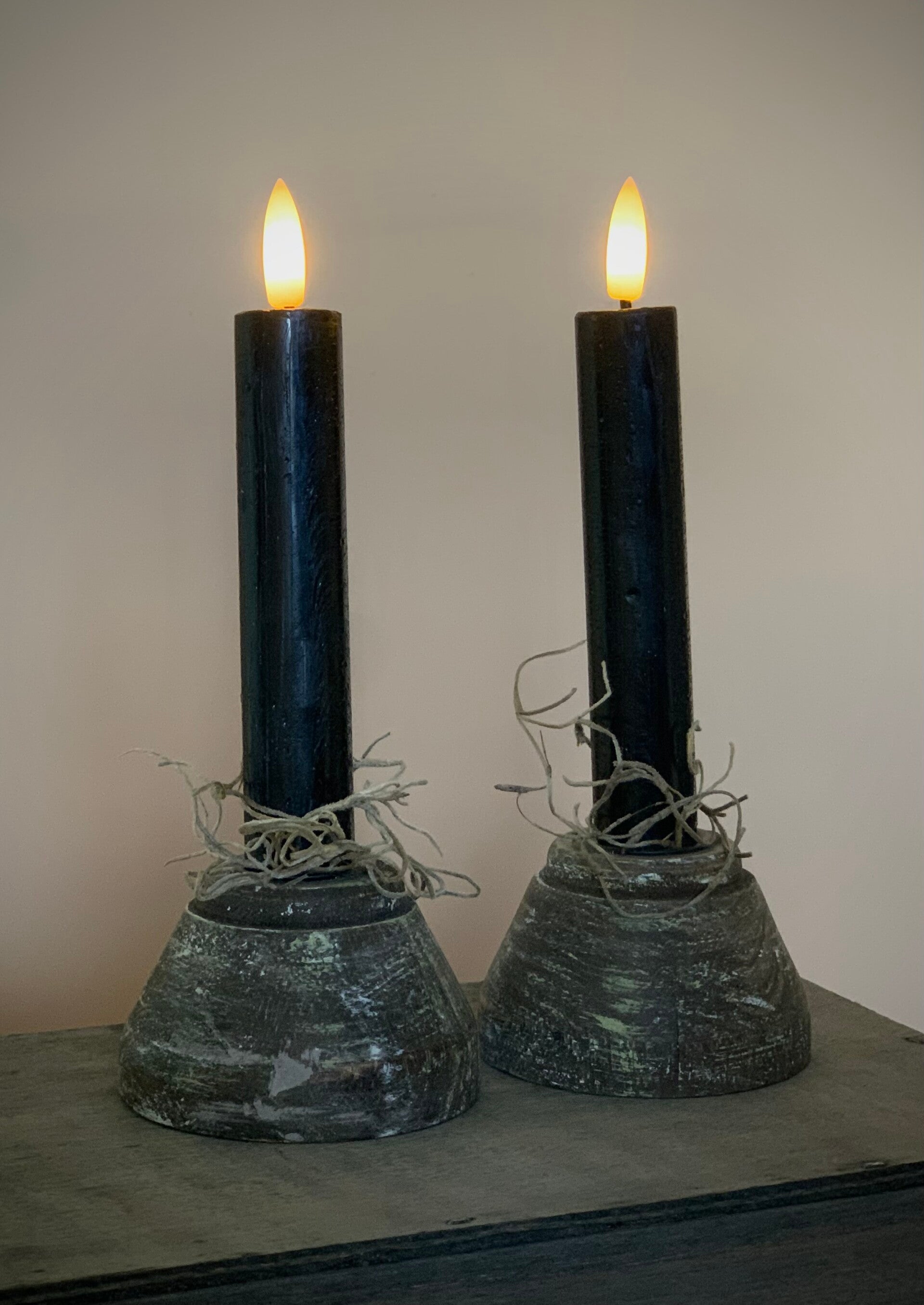 Kandelaar oud hout plat | set van 2