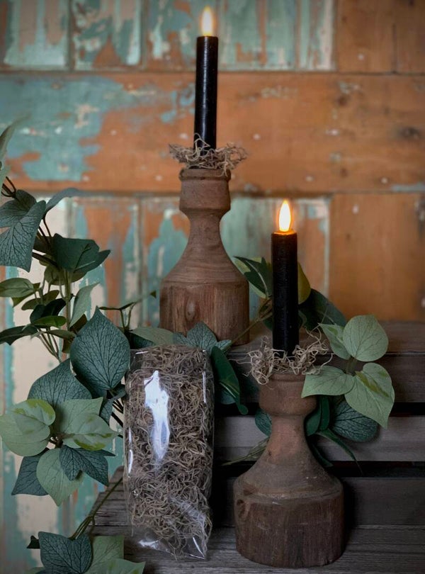 Houten kandelaren set van twee | 9x9x16cm