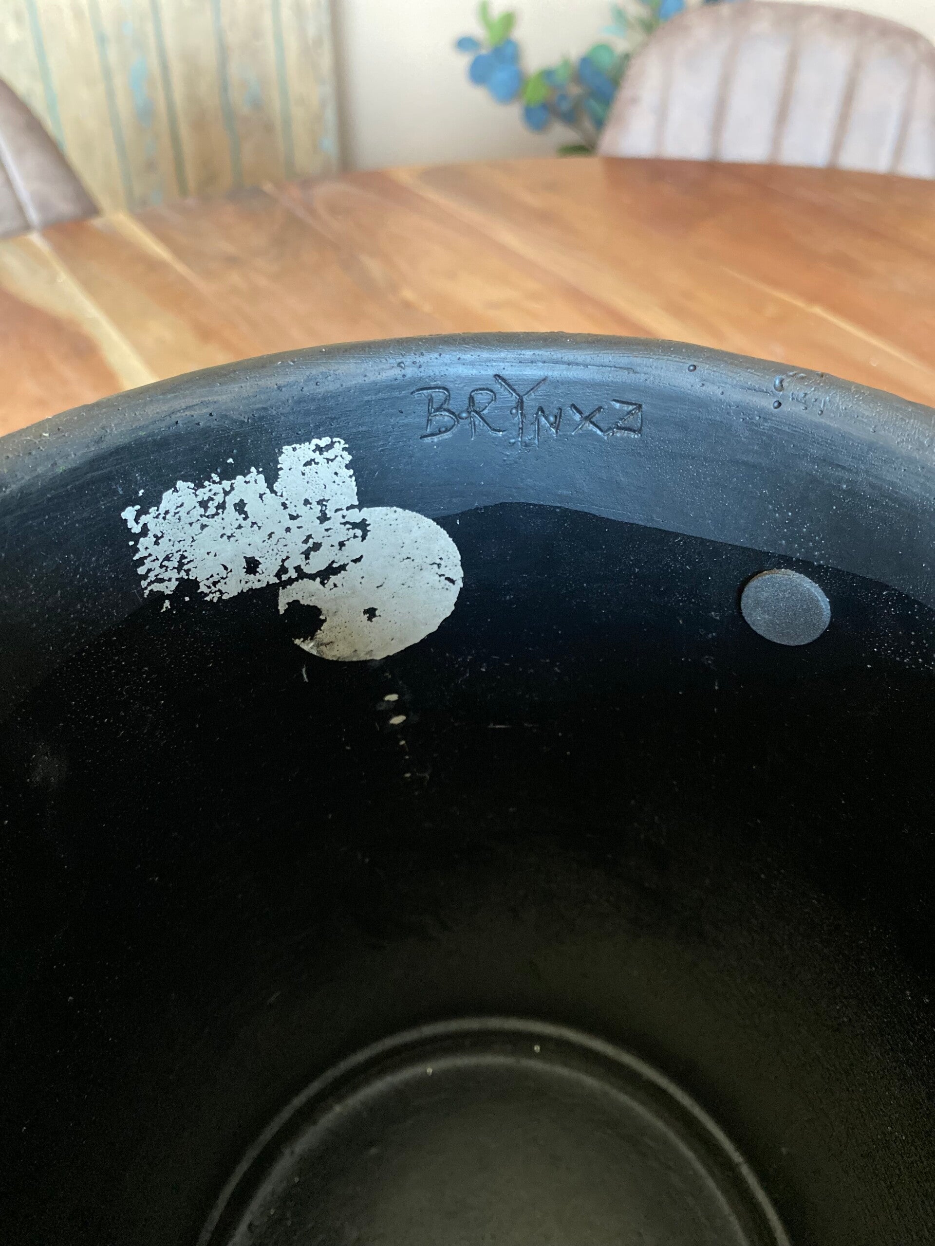 sticker beschadigding aan de binnenkant. Zie foto's. Vandaar mag de pot zo goedkoop weg.
